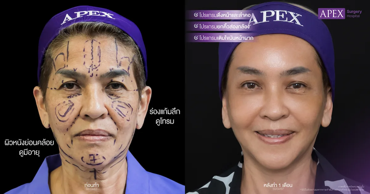 หลังผ่านไปประมาณ 8 เดือน ทีม APEX ได้มีโอกาสกลับไปพูดคุยกับคุณแม่วรรณาอีกครั้ง ตอนนี้คุณแม่ใช้ชีวิตได้ตามปกติมาก ไม่มีใครรู้เลยว่าเคยไปทำดึงหน้ามาเพราะผลลัพธ์ดูเป็นธรรมชาติสุด ๆ จนแทบไม่มีใครสังเกตออกค่ะ พอเข้าสู่เดือนที่ 9 ผลลัพธ์เริ่มเข้าที่สมบูรณ์ ใบหน้าดูอ่อนเยาว์ สดใสและดูสุขภาพดีขึ้นอย่างเห็นได้ชัด
