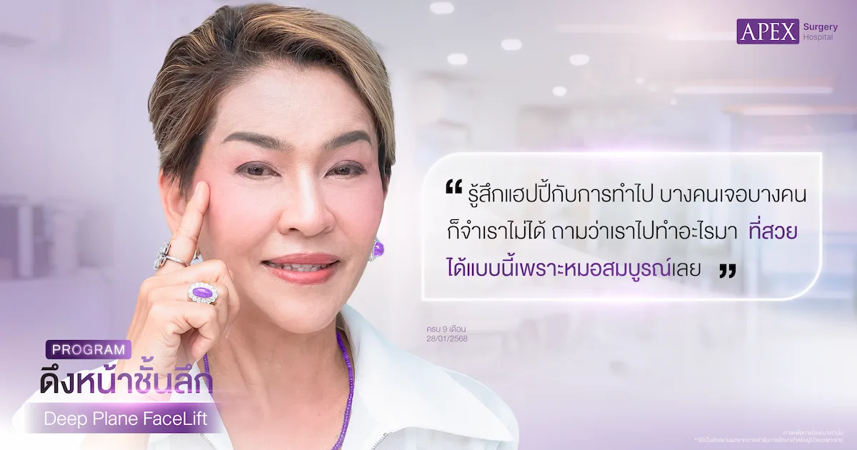 เมื่ออายุเพิ่มขึ้น ความหย่อนคล้อยของใบหน้าและลำคอก็เริ่มเห็นชัด จนทำให้หลายคนรู้สึกไม่มั่นใจเหมือนเดิม บทความนี้จะพาไปฟังประสบการณ์จริงของคุณแม่วรรณากับการตัดสินใจทำโปรแกรมดึงหน้าชั้นลึก DFL ที่ APEX Surgery จากความกังวลและความกลัว สู่ผลลัพธ์ที่เกินความคาดหวังและความมั่นใจที่กลับมาอีกครั้งค่ะ