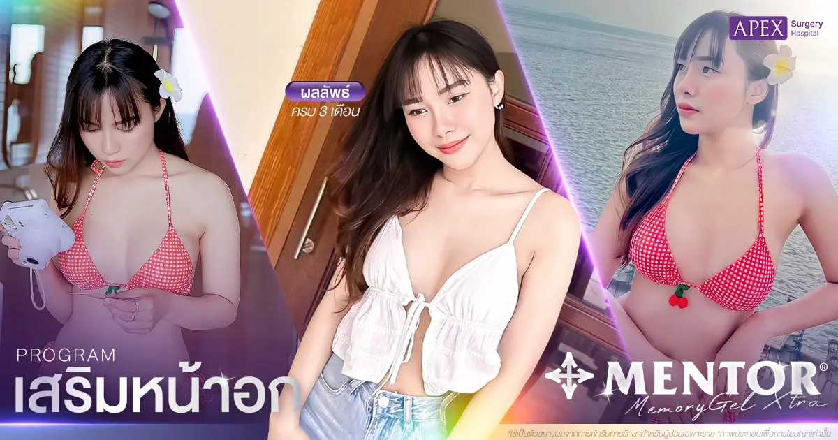 การตัดสินใจเสริมหน้าอกด้วย Mentor Xtra Gel ที่เอเพ็กซ์ ภายใต้การดูแลของคุณหมอสมบูรณ์ (ว. 22713) ทำให้คุณพิมพ์สามารถก้าวข้ามปัญหา “น้องแบน” ไปได้ ผลลัพธ์ที่ได้คือหน้าอกที่พอดีตัว สัมผัสนิ่มดูเป็นธรรมชาติ ทำให้เธอสามารถใช้ชีวิตได้อย่างอิสระ เลือกใส่เสื้อผ้าได้ง่ายขึ้น และมั่นใจในทุกชุดที่สวมใส่